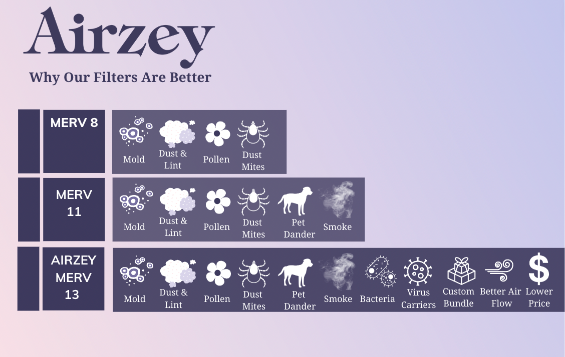 We use MERV 13 rated filters to ensure that you and your family are breathing the best quality air. With our unique nano-fiber designs, we can offer a higher MERV rated filter without compromising the airflow in your HVAC system.